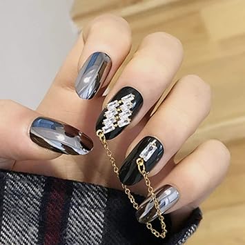 Amazon Com Sethexy Glossy Black Fake Nails Reflection Magic